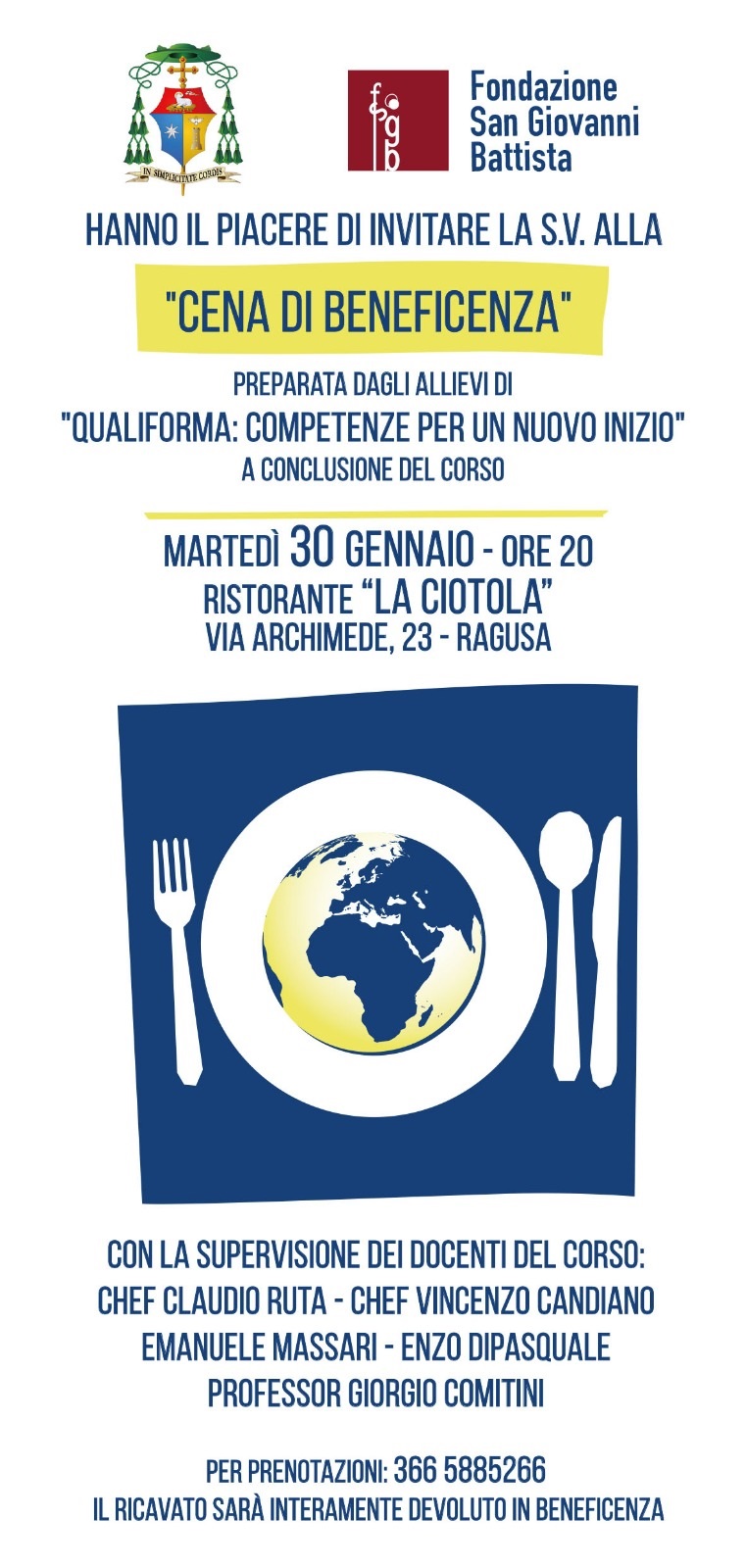 (dalla pagina FACEBOOK della Fondazione San Giovanni Battista) 𝐂𝐞𝐧𝐚 𝐝𝐢 𝐛𝐞𝐧𝐞𝐟𝐢𝐜𝐞𝐧𝐳𝐚 𝐜𝐨𝐧 𝐠𝐥𝐢 𝐚𝐥𝐥𝐢𝐞𝐯𝐢 𝐝𝐢 “𝐐𝐮𝐚𝐥𝐢𝐅𝐨𝐫𝐦𝐚. 𝐂𝐨𝐦𝐩𝐞𝐭𝐞𝐧𝐳𝐞 𝐩𝐞𝐫 𝐮𝐧 𝐧𝐮𝐨𝐯𝐨 𝐢𝐧𝐢𝐳𝐢𝐨” La …